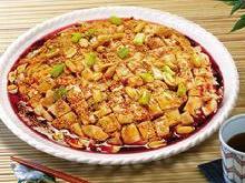 陈麻婆豆腐是由国家命名的一家《中华老字号》老牌名店。其创业于清朝同治初(1862年),开业于成都北郊的万福桥。原名陈兴盛饭铺,主厨为陈春富之妻。陈氏所烹豆腐色泽红亮,牛肉粒酥香,麻、辣、香、酥、嫩、烫、形整,极富川味特色,陈氏豆腐很快便名播遐尔,求食者趋之若鹜,文人骚客常会于此。有好事者观其陈氏脸生麻痕,便戏之为“陈麻婆豆腐“,此言不胫而走遂为美谈。饭铺因此冠为“陈麻婆豆腐店“。清朝末年,陈麻婆豆腐就被列为成都的著名食品。