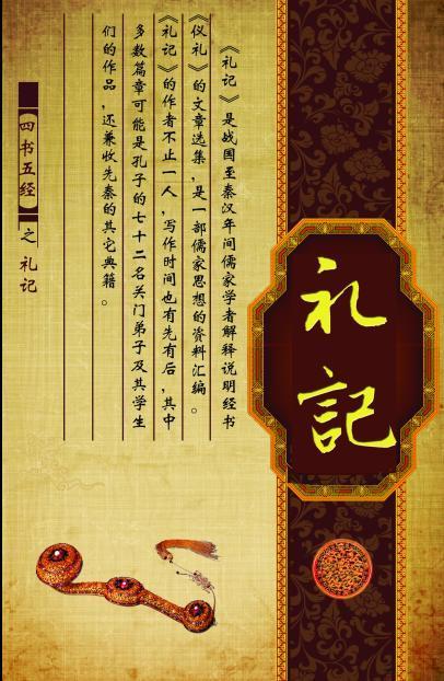 礼记《礼》,有《周礼》、《仪礼》及《礼记》三种(后世《五经》中的“礼”指《礼记》)。《周礼》是战国时的学者记述周朝官制的书。《仪礼》也叫做《士礼》或《礼经》,是春秋战国时代礼仪制度的汇编著作,共十七篇,约56000字。旧说周公制作或经孔子修定。据近人的考证,认为可能成书于战国前、中期。《礼记》是战国到秦汉年间儒家学者解释说明《仪礼》的文章选集。《周礼》、《仪礼》、《礼记》合称“三礼”。