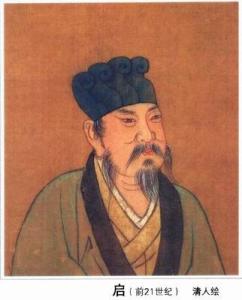 夏启夏王启禹死后,益(伯益,也有人认为益不是伯益,而是同一时代的两个人)按照部落联盟的传统,为禹举行丧礼,挂孝、守丧三年。三年的丧礼完毕后,益没有得到权位,而启在民众的拥护下,得到了权位。关于这一段历史的记载,说法不一:古本《竹书纪年》记载“益即位后,启杀益而夺得君位“;另一说”益继位后,有些部族并没有臣服益,而拥护启,并对益的部族展开战争,最后启胜而夺得权位。之后益率领着东夷联盟讨伐启。经过几年的斗争后,启确立了他在部族联盟中的首领地位“,但其共同观点是“公天下”变成了“家天下”。
