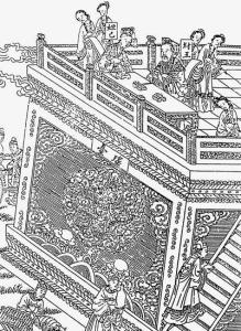 于是使师谓作新淫声,比里之舜,靡靡之乐。厚赋税以实鹿占之钱,而盈巨桥之粟。益收狗马厅物,充仞宫室。益广沙丘苑台,多取野兽蜚鸟置其中。慢于鬼神。大最乐戏于沙丘,以酒为池,悬罔为林,使男女伴相逐其间,为长饮之饮。