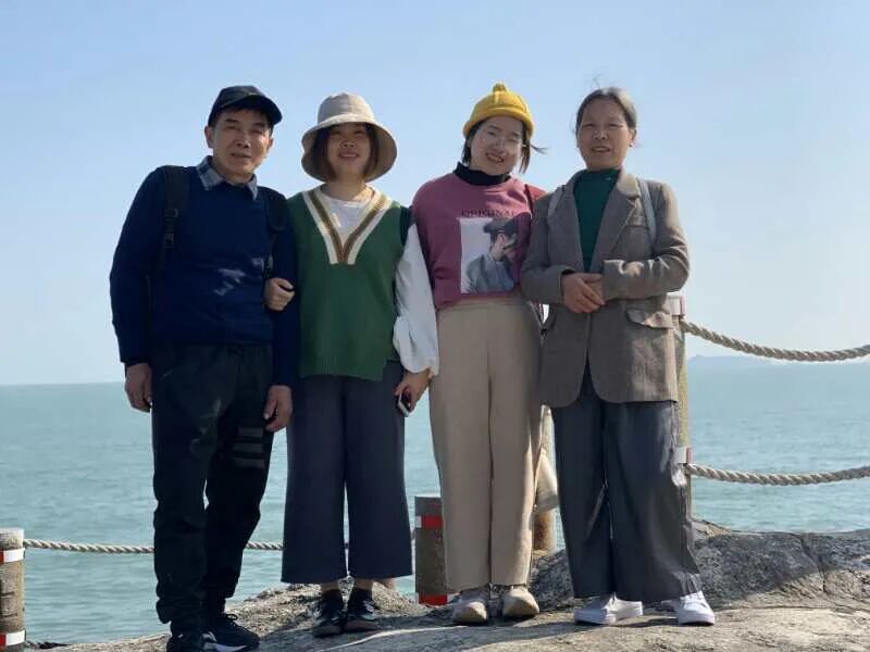 戴佳丽(左二)和父母以及妹妹在一起 受访者供图