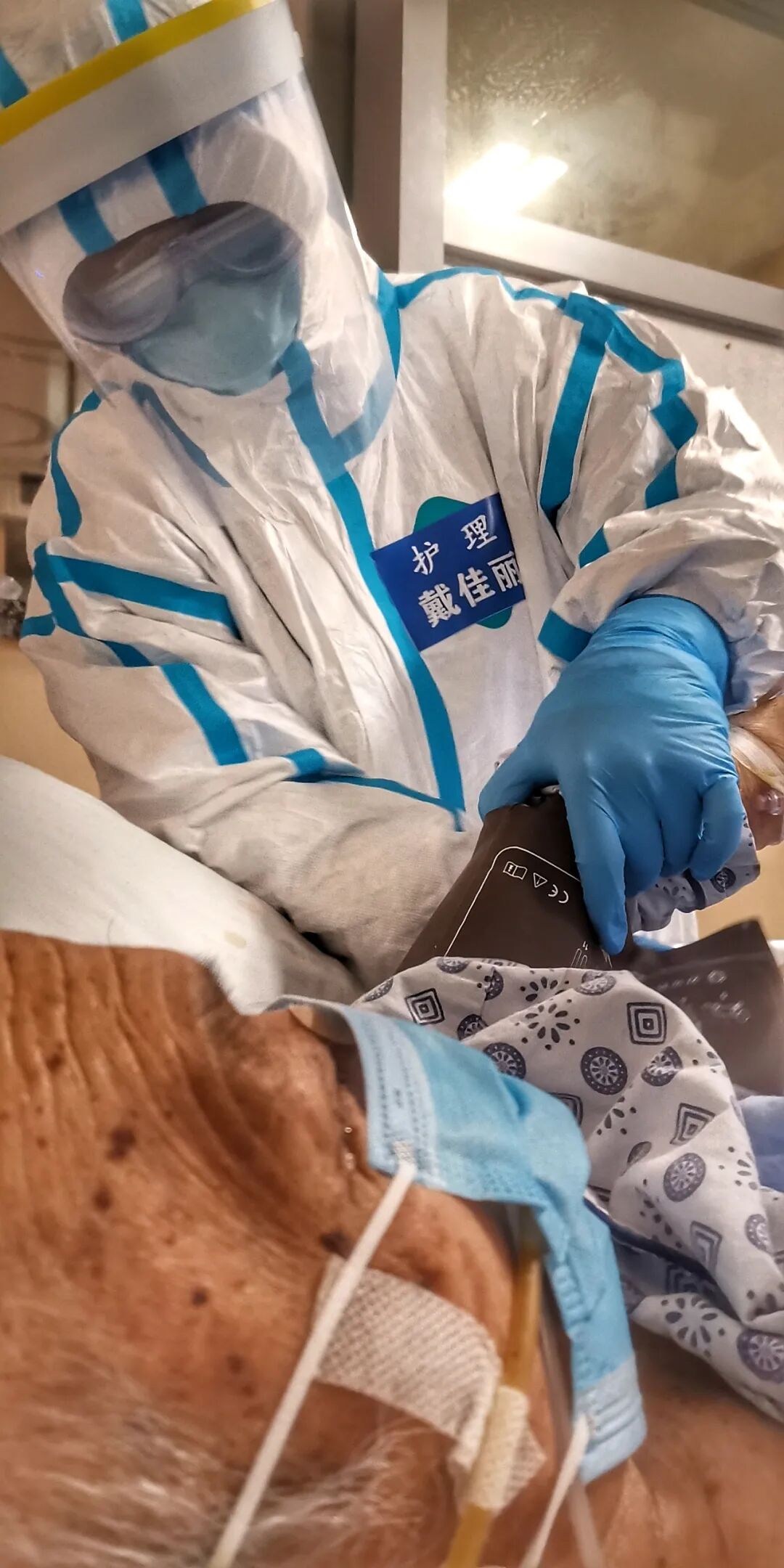 而戴佳丽和身边的医护人员对她悉心照顾:不仅打针、喂药,时刻关注她的病情;还洗脸、擦身体、陪聊天,尽心照料生活,并一次次拉着手进行精神安慰和鼓励,告诉她不用怕,一定可以好起来。