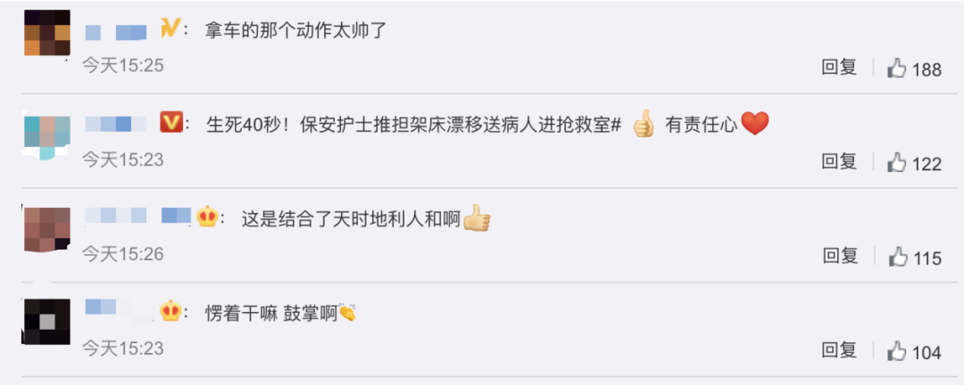 网友们纷纷为保安和护士点赞