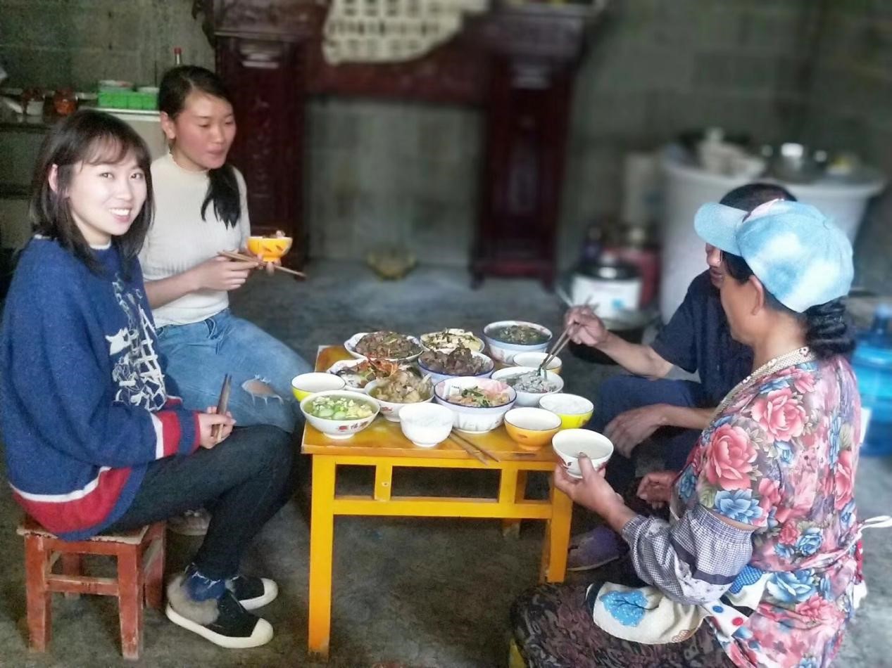 帮扶农户过年回家,邀请桑姝蓉(左一)到家里吃饭