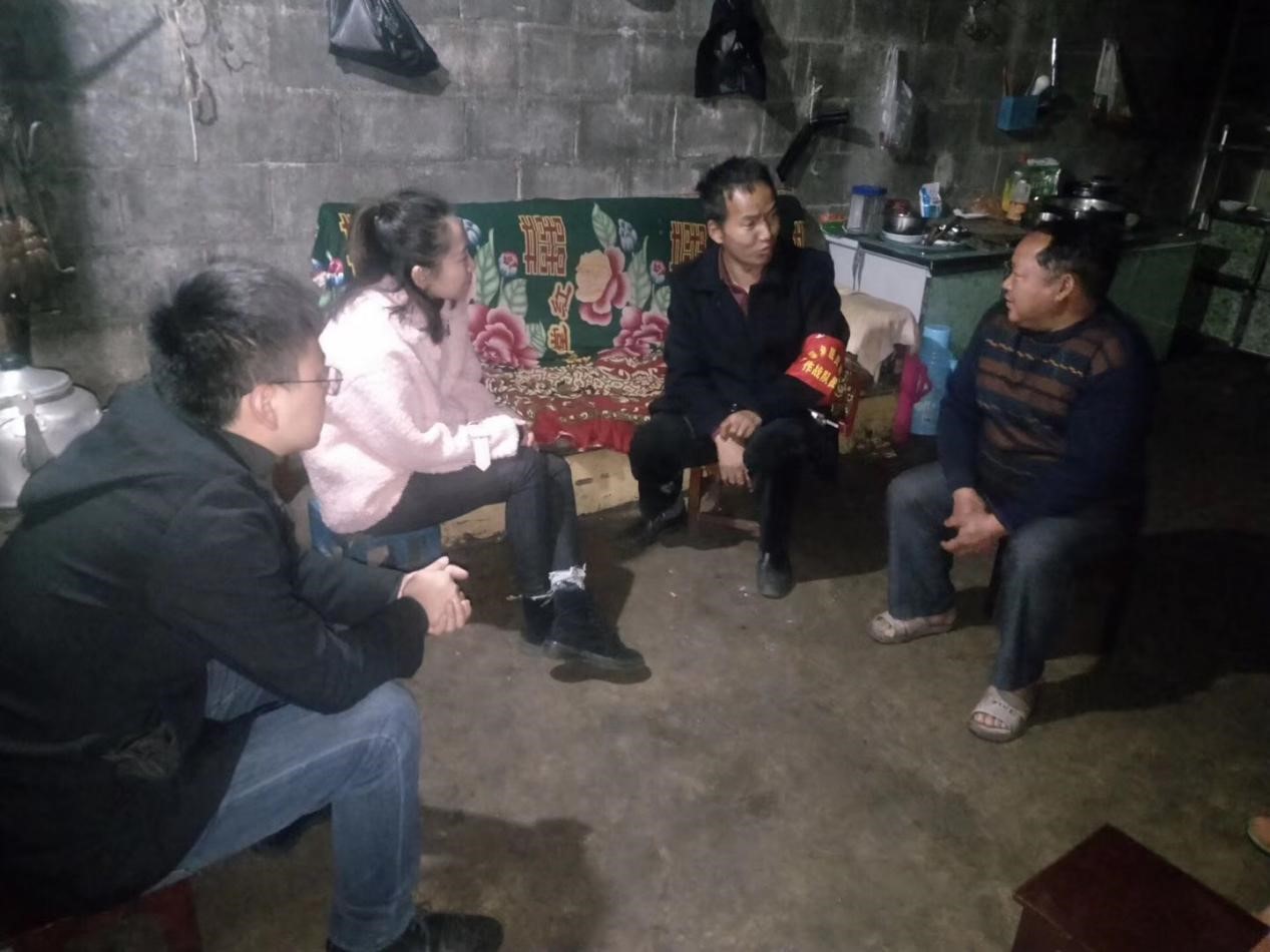 桑姝蓉(左二)深夜到困难农户家发动农户参加易地扶贫搬迁项目