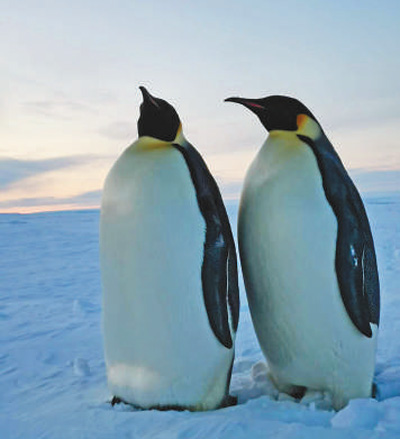 5月26日,队员在普里兹湾海冰观测途中偶遇的企鹅。孙晓宇摄