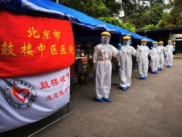北京市鼓楼中医医院医护人员“全副武装”准备采样。
