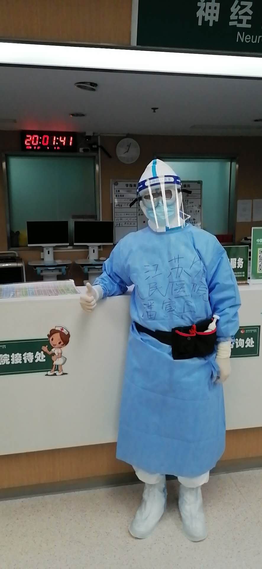 春节一家人回宁夏外婆家过年,大年初二,还在宁夏的潘寅兵就给麻醉科党总支蒋秀红书记发了信息,“蒋书记,我明天下午五点回南京,听候调遣。” 作为一个医生,武汉疫情严峻,他知道下面将是一场恶战,心里早做好了去武汉抗疫的准备,“只要组织需要,我愿意第一个接受安排。”他说。