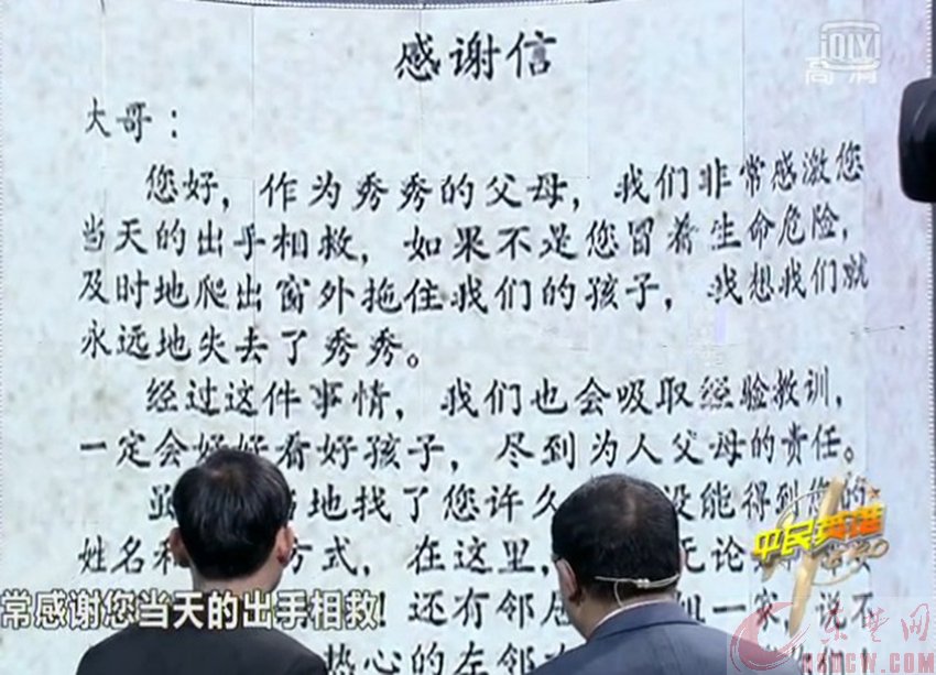 湖南卫视以《神秘的“蜘蛛侠”》为题对他进行了专访,主持人钟山称赞说:“他和我们一样平凡,却在最危险的时刻化身为勇士。”
